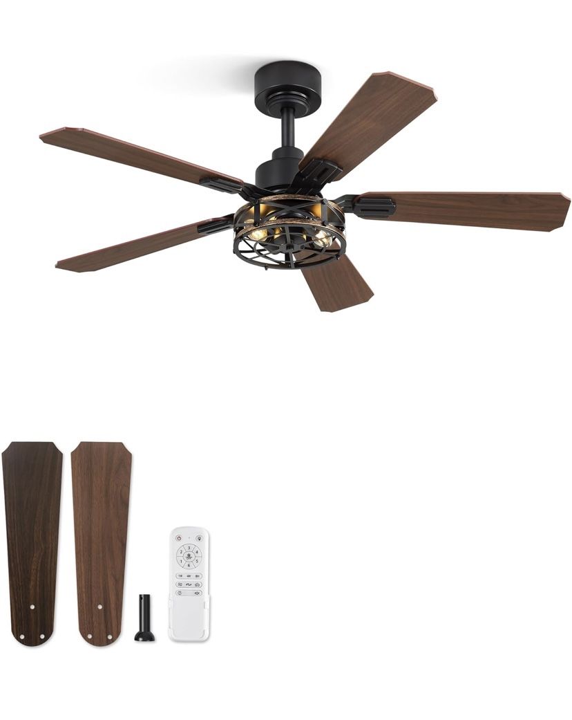 42 Inch Rustic Caged Ceiling Fan with Lights, Black Farmhouse Double-Sided (CMT)