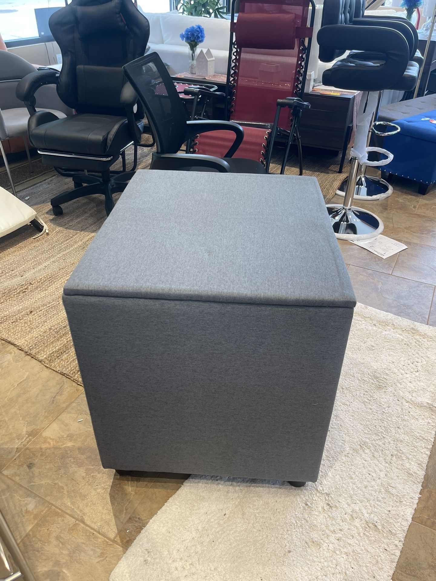 Brand new grey fabric storage ottoman u take the lid off and u have a wooden table pulls out so u can eat on it they are brand new just pulled it out of the box retail is $189 but At M&L $100 only