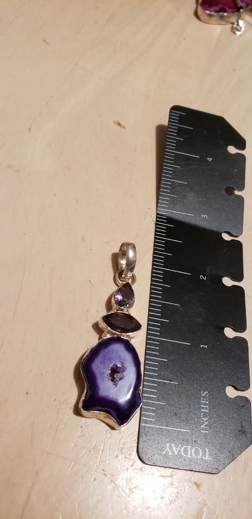 Agate druzy and quartz. Agate is natural. Enhanced color. Quartz I am not sure. Stamped 925. Pick up in Deerfield,