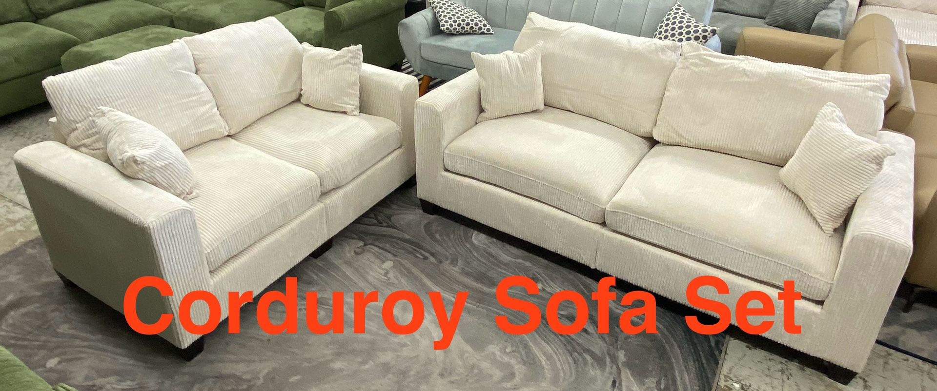 Brand New Beige Corduroy Fabric Sofa and Loveseat Set with Pillows Love - 61 x 34 x 35H Sofa - 77 x 34 x 35H AFFORDABLE PRICE GREAT QUALITY Free delivery Only $20 down! Financing available with Zero Interest on 90 Day payoff. (Easy to qualify) No Credit Needed! Can text you an application to your cell phone for immediate approval. WHEN YOU CHOOSE TO BUY FROM US; • Same/Next Day Delivery on most items. • Direct factory distributors - Pay for the item, not the overheads! • Cash / Venmo / Zelle / Cash App / Credit Card on delivery - Upfront Payment Optional.