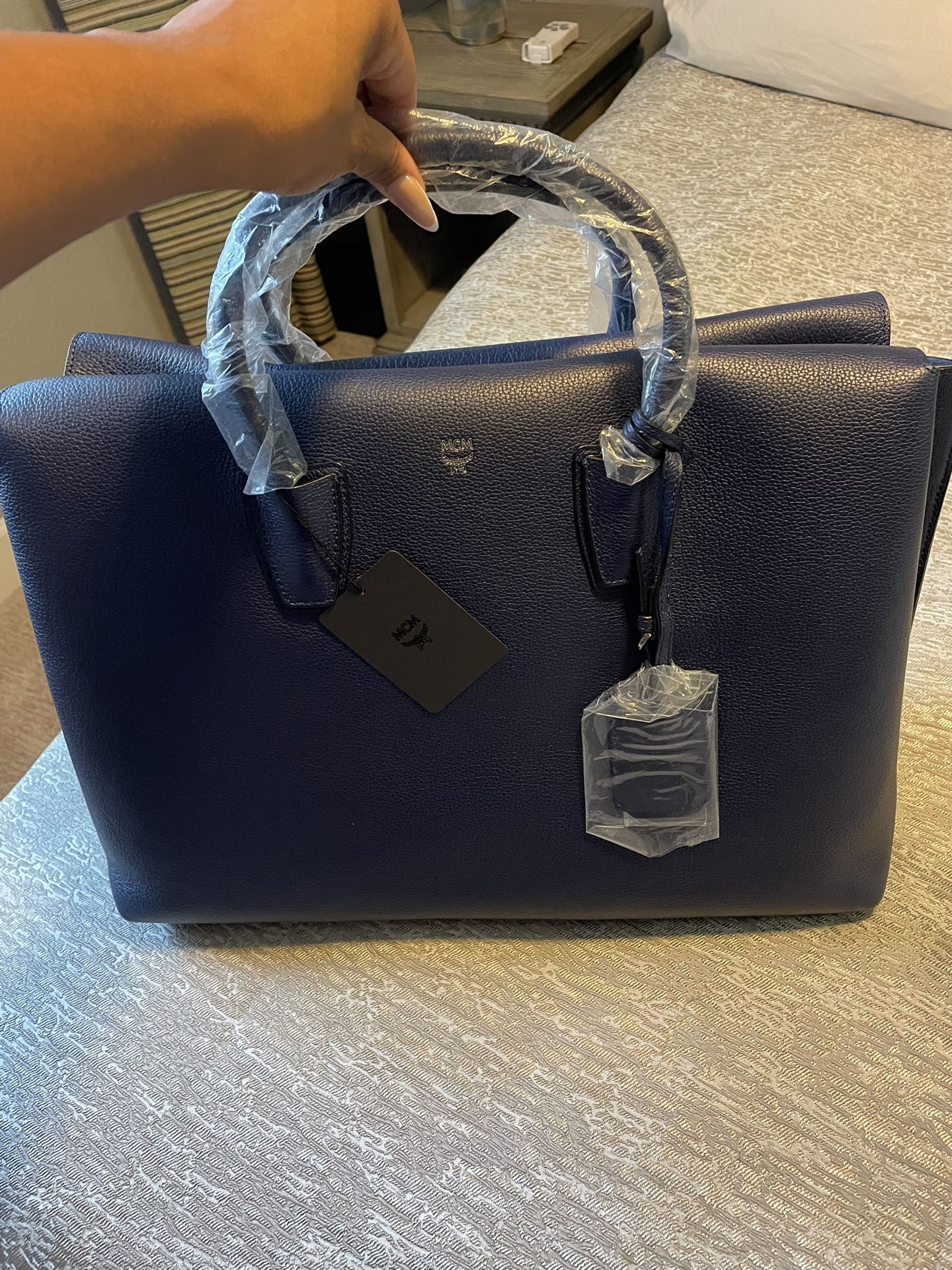 MCM Large Navy Maxim Ew Tote