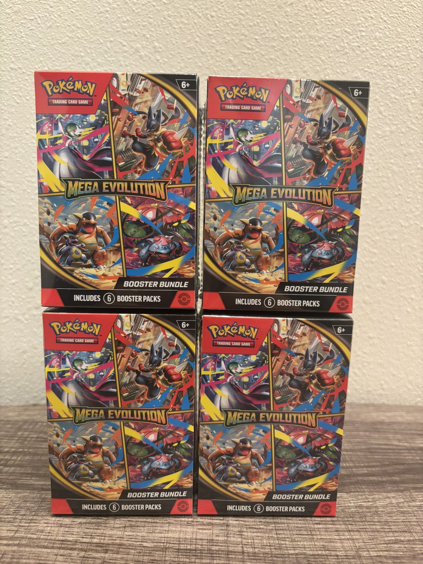Factory sealed Pokémon Mega Evolution Booster Bundles 4 available $40 each firm Beaverton Town Square Pickup