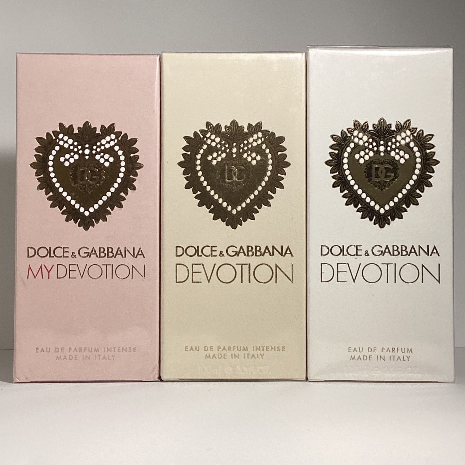 Dolce Devotions: 3 x $150 - 2 x $110 - 1 x $60 - New Devotion Eau de Parfum Dolce & Gabbana 3.3 oz Women's Perfume. Brand new, sealed. Yo hablo español. - New Devotion Eau de Parfum Intense Dolce & Gabbana 3.3 oz Women's Perfume. Brand new, sealed. Yo hablo español. - New MyDevotion Eau de Parfum Intense Dolce & Gabbana 3.3 oz Women's Perfume. Brand new, sealed. Yo hablo español.