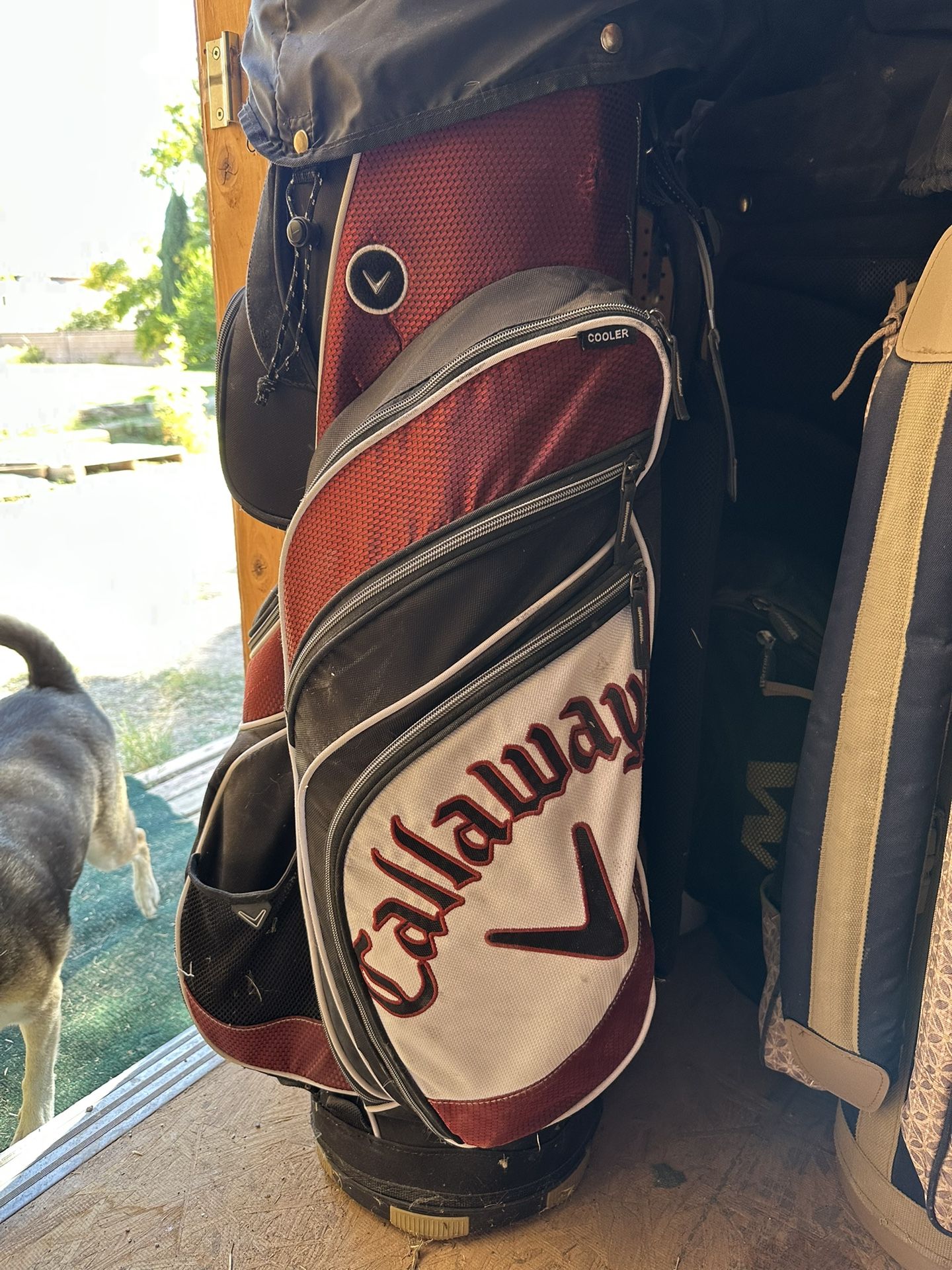 Used but well taken care of. Three bags; 1 calaway, 1 warrior, 1 kids bag. All clubs that come with them and hats and whatever is in the bag.
