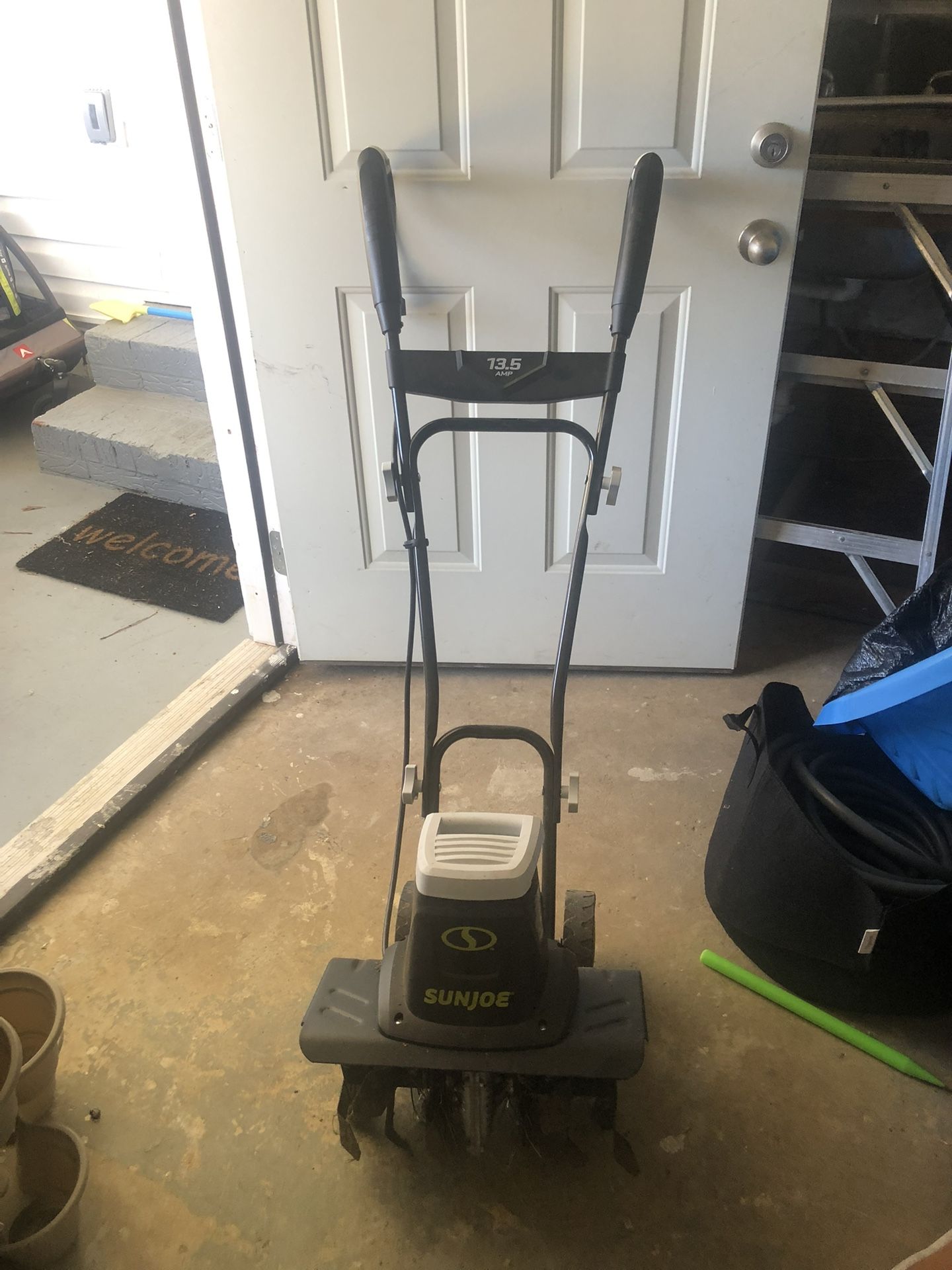 Powerful 13.5-Amp motor, durable steel blades, compact and convenient design with adjustable wheels. Only used twice