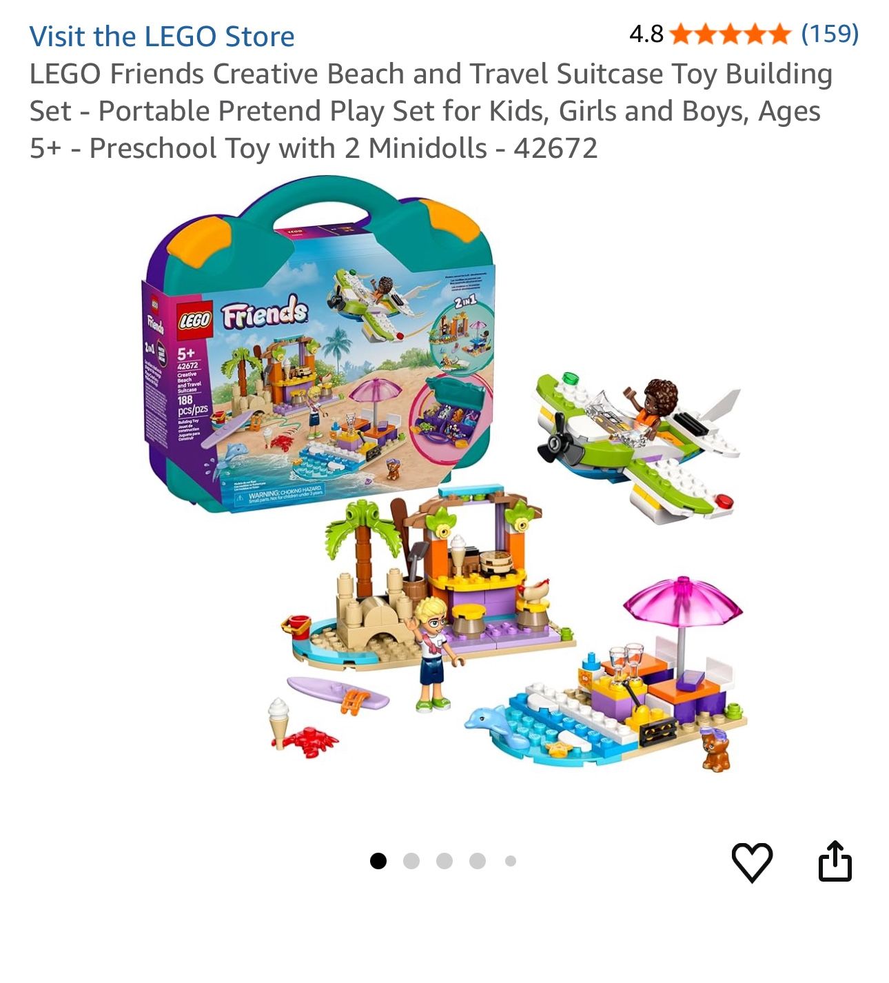 Used at excellent condition BOAT AND PLANE MODELS – The set includes a beach scene with a seaplane, relaxation area and beach café space, which rebuilds into a new scene with a speedboat toy, outdoor seating and a pizza shop CUSTOMIZABLE ORGANIZER CASE – This LEGO set comes with a sticker sheet so kids can have fun personalizing the suitcase (included in box), which stores the pieces ready for the next vacation adventure TOY FIGURES & PLAYSET – This set comes with characters and lots of beach-themed accessories, including a surfboard, radio, pizza, sunscreen and ice cream