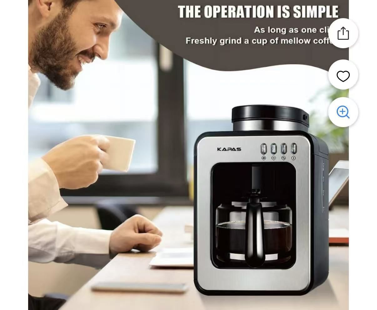 KAPAS Mini Automatic Coffee Machine With Grinding Function, Programmable Timer Mode and Keep Warm Plate,0.6L Capacity, 600W New Still in the box