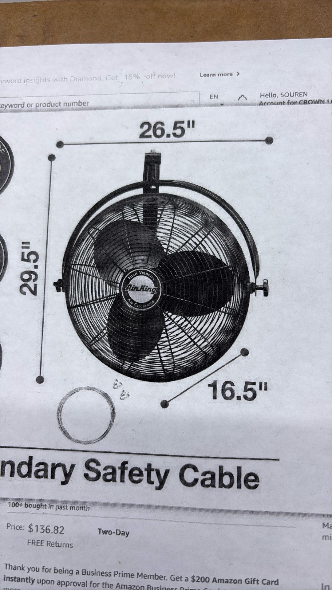 Wall Mounted 20” Industrial Fan, NEW In Box!