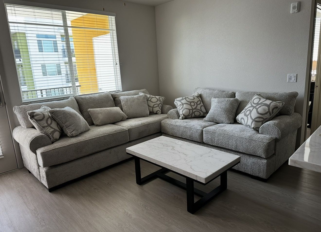 Camero Gray Sofa + Loveseat Set – $200 for BOTH Willing to sell individually. Make an offer. Includes: • Sofa (approx. 100”W x 44”D x 40”H) • Loveseat (approx. 75”W x 44”D x 40”H) • Extra-deep seating (very comfortable) • Neutral storm gray color • Solid wood black legs • Matching throw pillows included Condition: • Gently used • No structural issues • Cushions still supportive • Smoke-free, pet-free home Reason for selling: Too big for new home. If the post is up, it’s available. Awww Serious inquiries only please. I truly love this sofa and it’s hard for me to part with it, but unfortunately, it’s too large for my new house. 📍 Pickup only