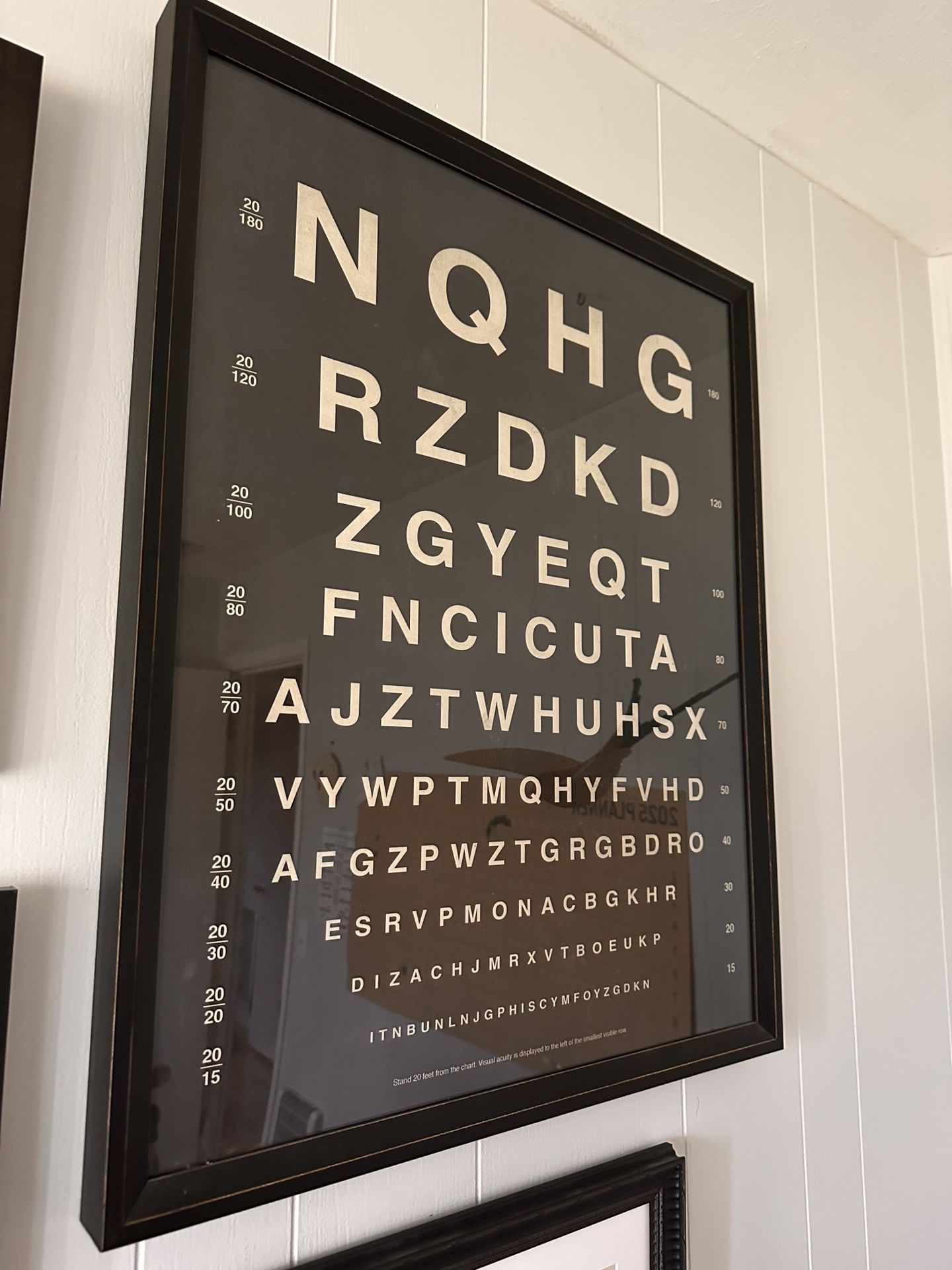 30” x 24” Framed Eye Chart Art. Part of an international moving sale. Please explore our other items for deals on bundles!