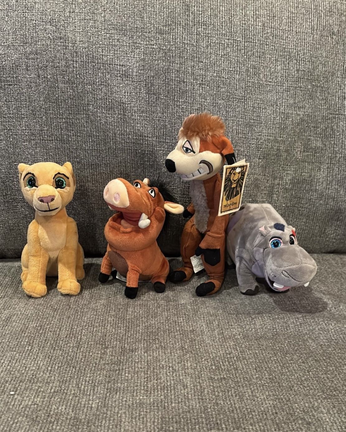 Preowned in good condition Vibrant colors Lion king set: HIPPO 8”, PUMBA 8”, TIMON 11”, NALA 8” (only one has original store tag) Kept in storage container for protection