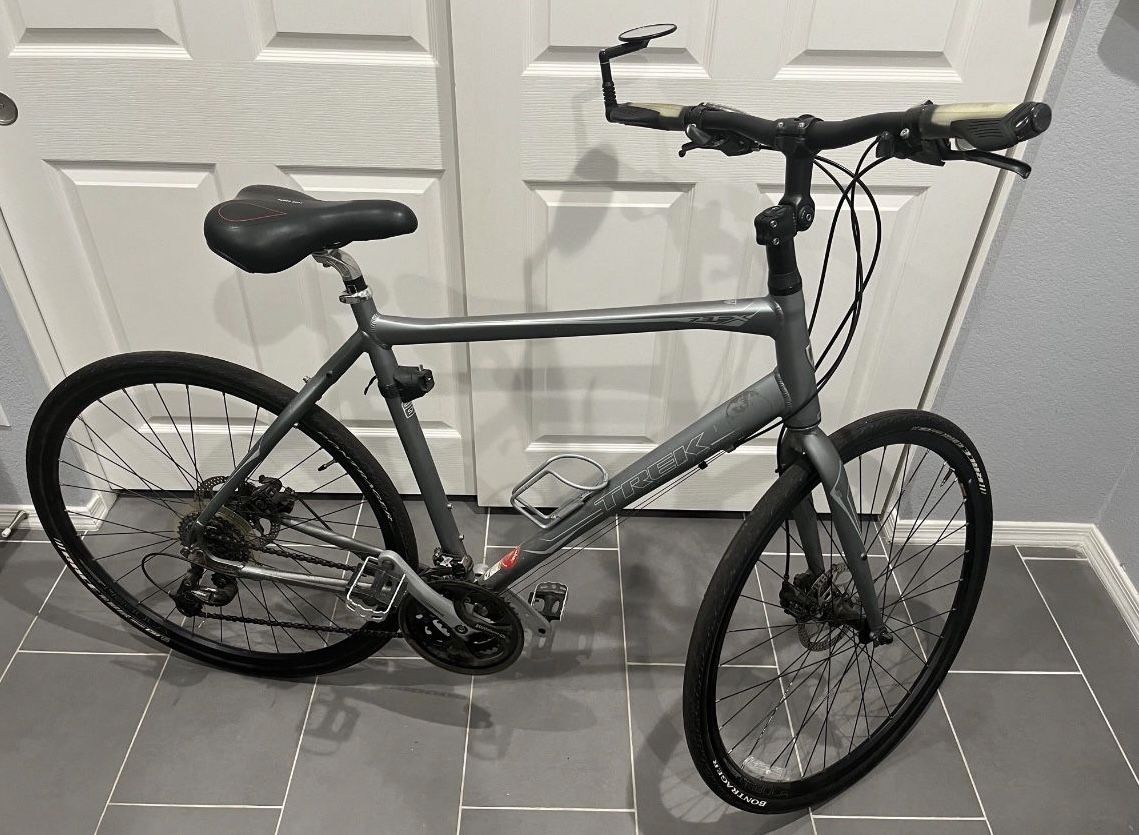 Trek 7.3 Road bike, 22.5/57cm. Pretty much brand new. Looks good and rides great. Raised Handlebars, oversized grips and mirror. Let me know if you're interested and make an offer. No longer need.
