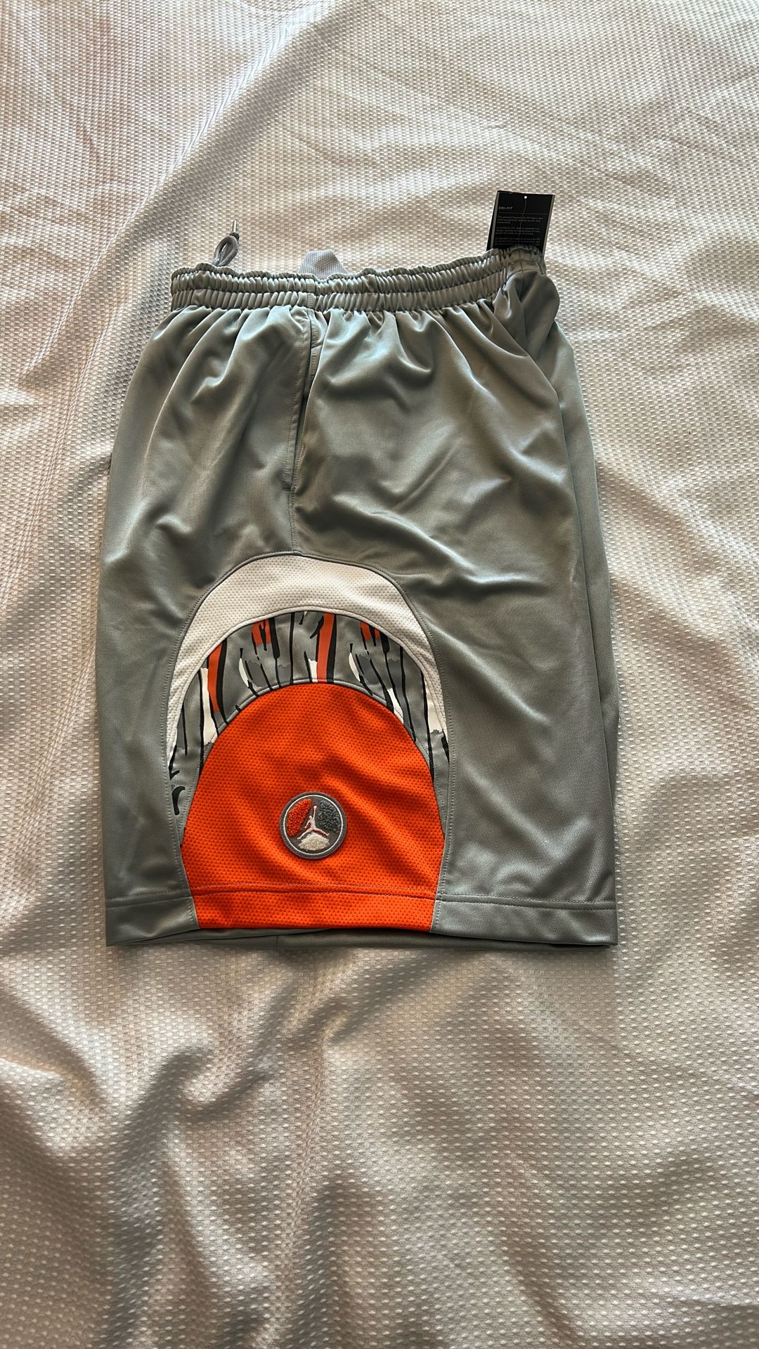Rare Basketball Shorts 90’s old school Gray Silver Orange size Large Got well with Jordan Retro 8 not used