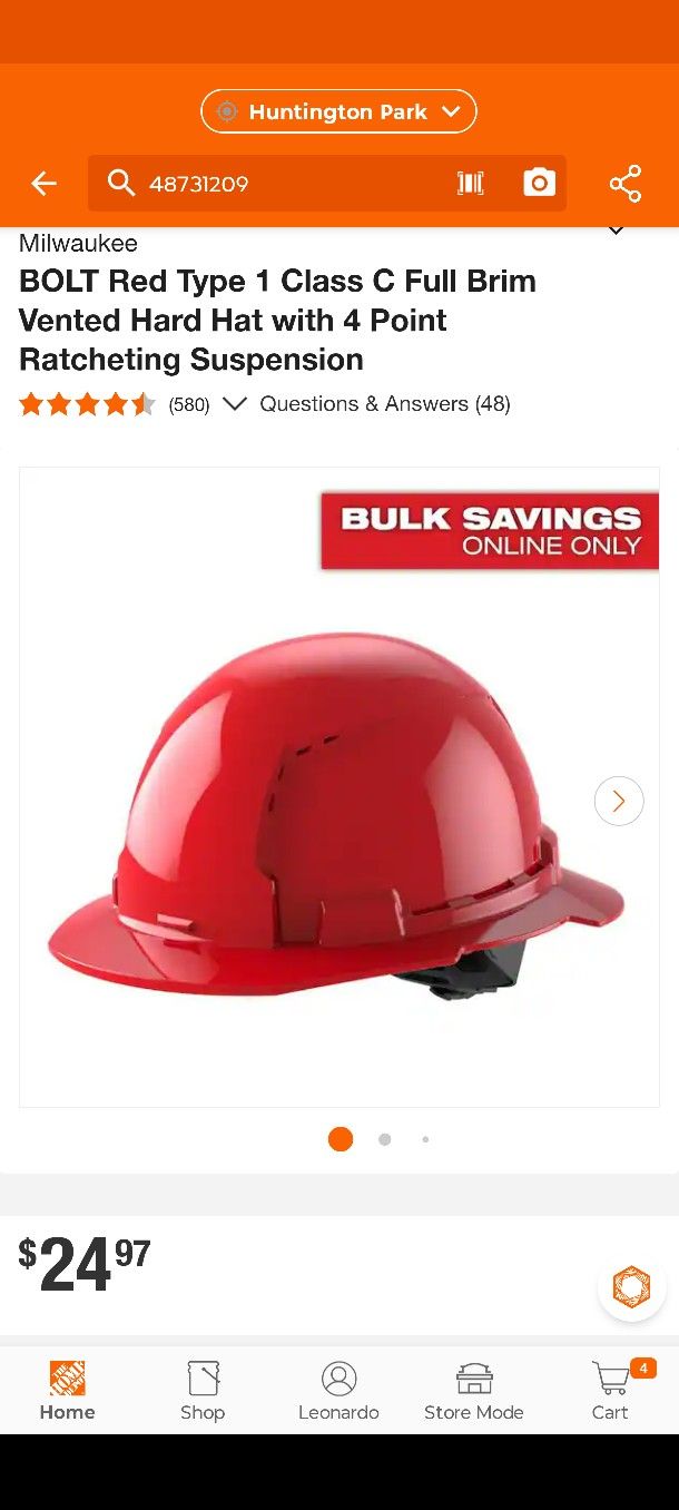 Milwaukee BOLT Red Type 1 Class C Full Brim Vented Hard Hat with 4 Point Ratcheting Suspension $20