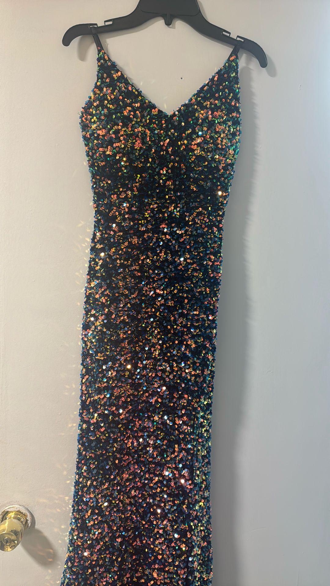 Brand new party dress that’s covered in rainbow sequence. We have three sizes, 0, 7 and size 13. The dresses have never been worn.