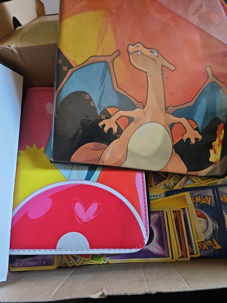 The pink binder is almost full. The Charizard one is only 2 and a half pages and everything in the box is random