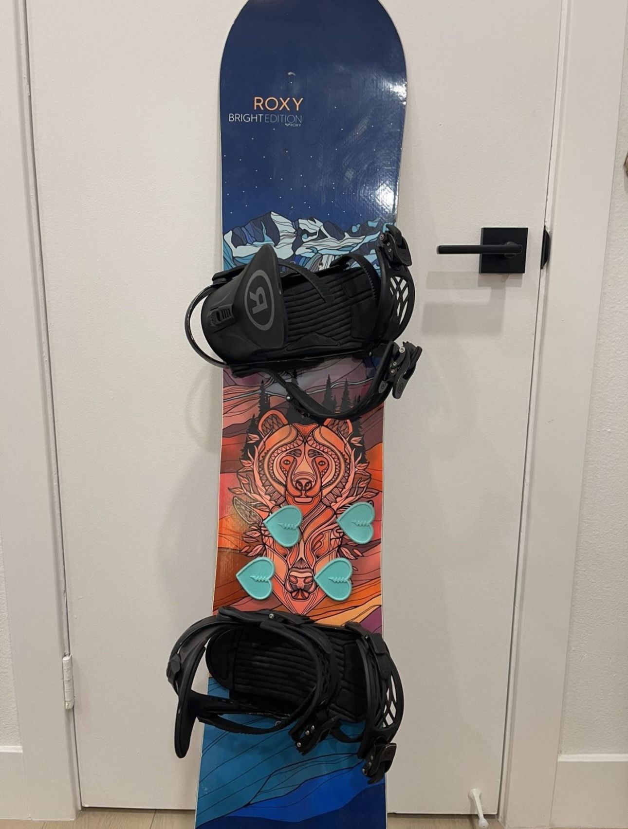 Woman’s 146 Roxy Bright Edition Snowboard in a great condition!! Just got a fresh wax last week ready to go! Only used a few times in great condition. ** willing to sell bindings as well Snow Goggles Helmet Skis Snowboarding Burton Northface Arbor
