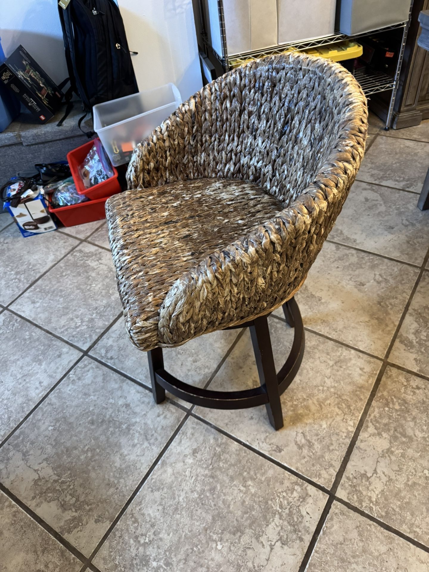 Pair of wicker chairs-can spin 360, wooden bases, comfortable and well made