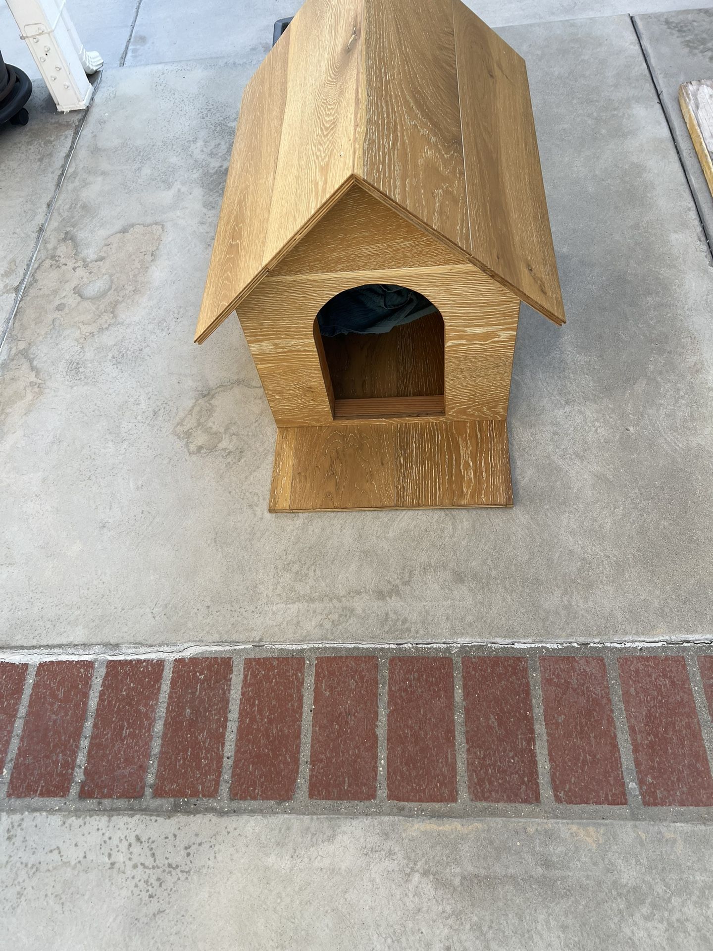 House made for small dogs like chihuahuas, shih tzus, yorkies, etc. Custom made with fine hardwood and was NEVER used.