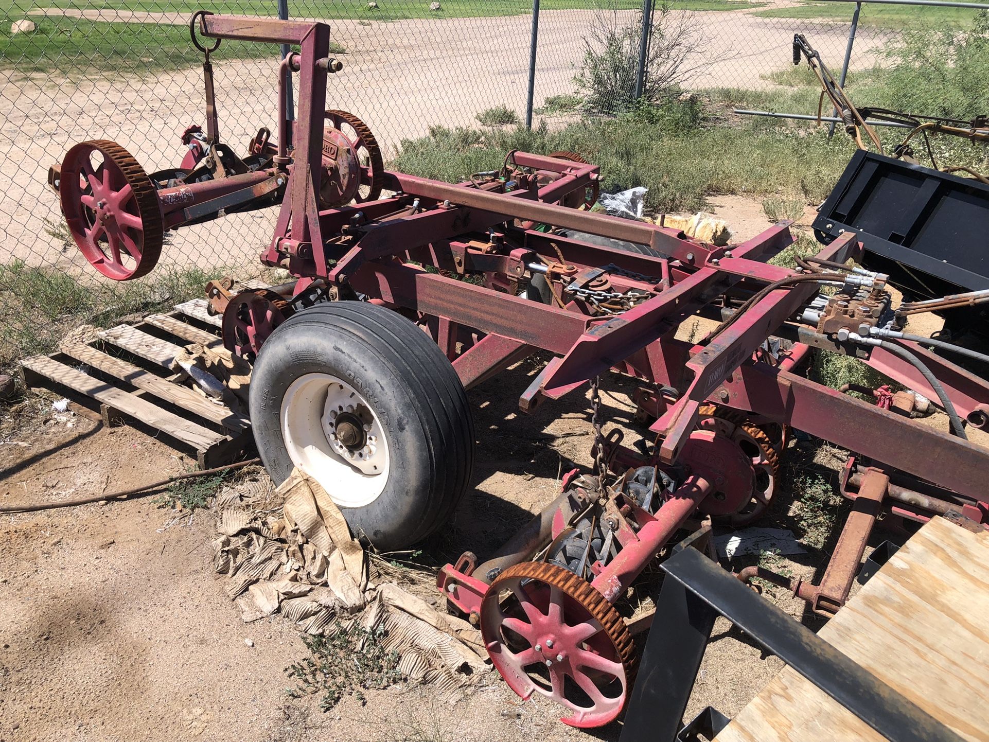 Toro pull behind gang mower belive it’s 14 wide when set up Works does need some tlc Lawn mower Tractor