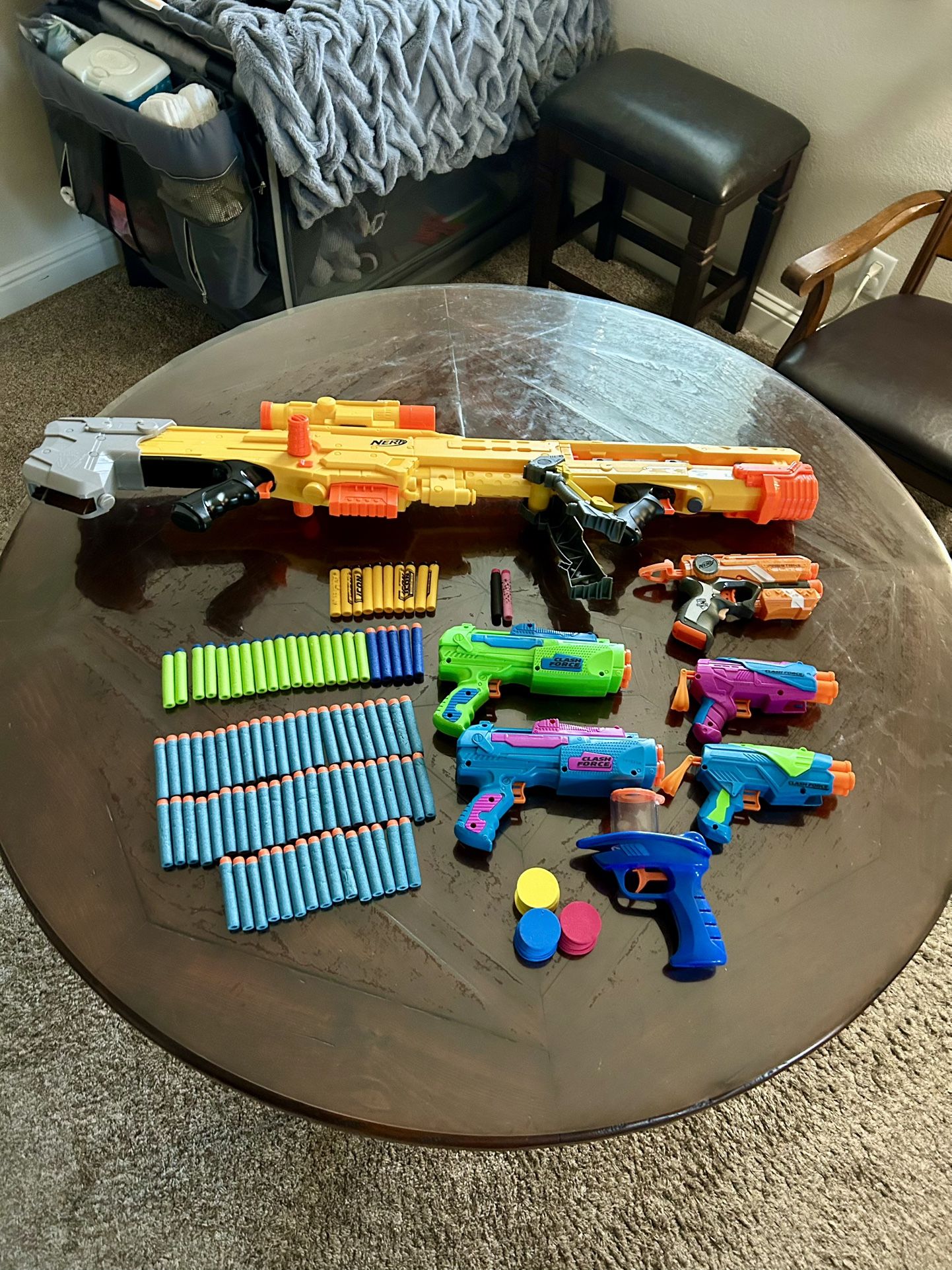 Everything fully functional, Nerf Longshot was never used; Lot of (2) Nerf guns, (5) other branded play guns w/ 100+ bullets/projectiles. Nerf Longshot: Use the main blaster and extension blaster separately or attach them together for a combined blaster. The main blaster has a folding bipod to steady shots, extendable stock to adjust for stability and fit, and attachable long-range scope for distance targeting. The extension blaster attaches to the front of the main blaster for back-up firepower to surprise opponents. The main blaster has bolt-action priming and comes with a 6-dart clip. The extension blaster has 1-dart capacity and pump-action priming. There's clip storage on the main https://offerup.com/redirect/?o=Ymxhc3Rlci5Obw== batteries required.