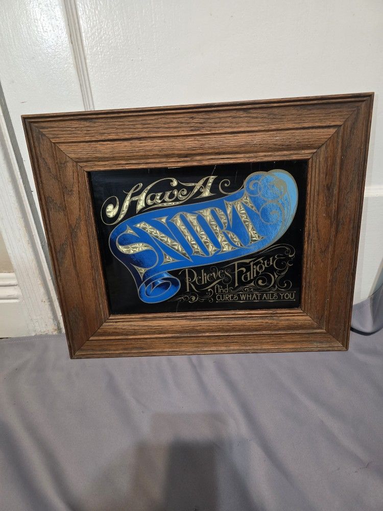Vintage"Have A Snort" sign, made of reverse painted glass with foil lettering. This specific sign was made by The Hensley Co. in the United States. Awesome collectors item!