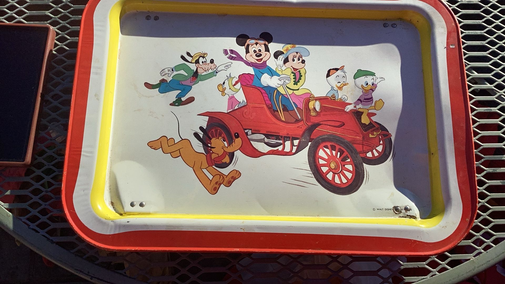 1970s Mickey Mouse and friends lap tray for kids and toddlers.