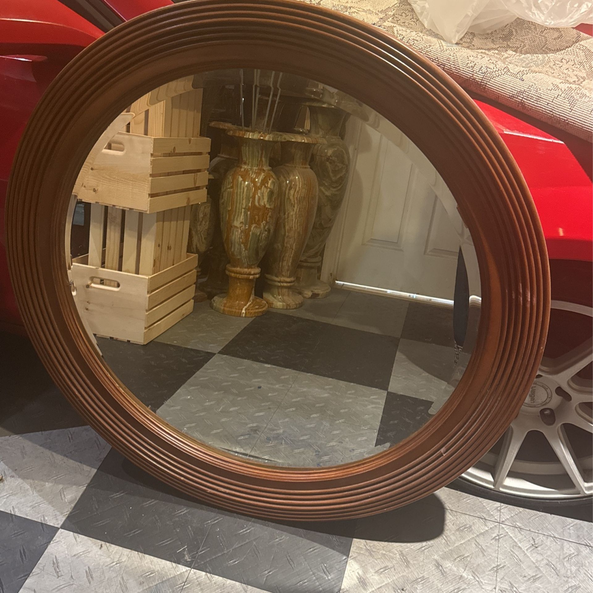 Round Wood Frame Mirror 41 Inch Diameter
