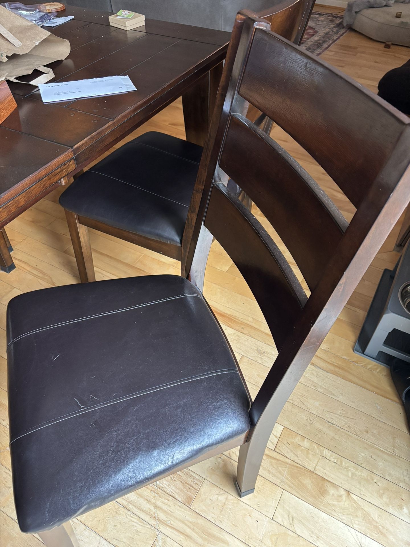Six chairs in good condition and the table has a scratch or two but overall looks really good. Smaller without leaf (seats four) and a full table with the leaf to seat six. You pick up in Bothell.