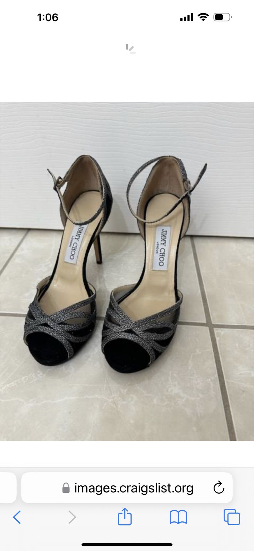 Women's Jimmy Choo heels size 5.5 U.S. (36 U.K.) This Jimmy Choo heels retails for $950. It's been worn only a few times and the sole is already patched by a professional. In great condition and is a very fancy heels. Also comes with box.