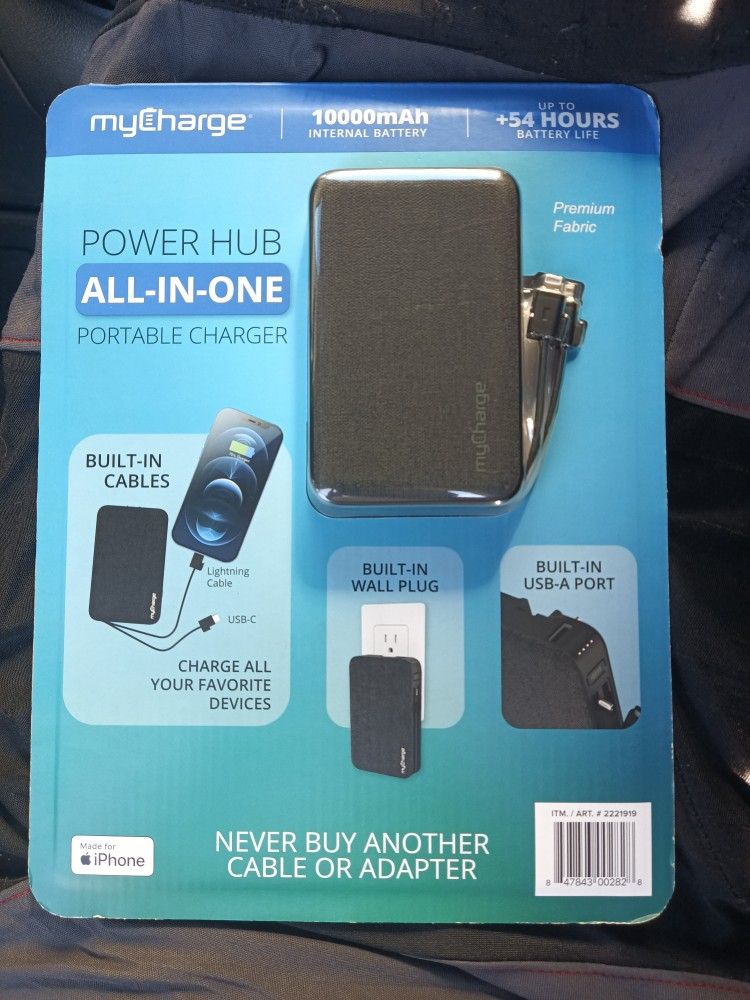 A,POWER HUB ALL-IN-ONE PORTABLE CHARGER IPHONES AND ANDROID DEVICES