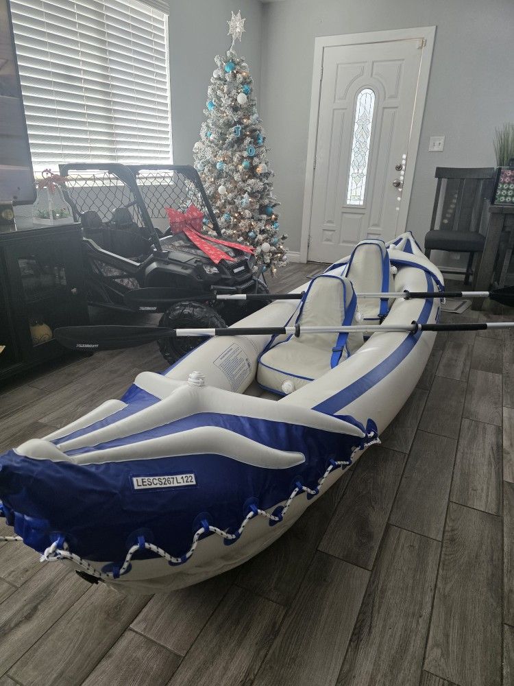 Like new. Comes with carrying bag, pump, repair kit, large dry bag and floaters. Barely used.