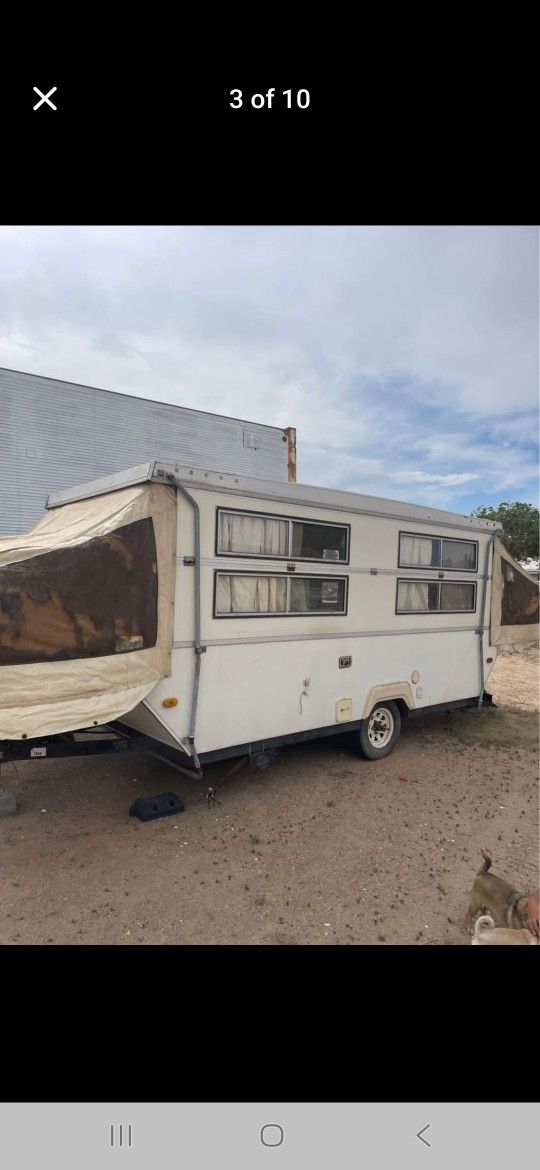 Pop up with unique side walls hard to find . Everything worked last time it was used . Needs tlc . Ready for next camping trip . Asking 1,800 obo need gone