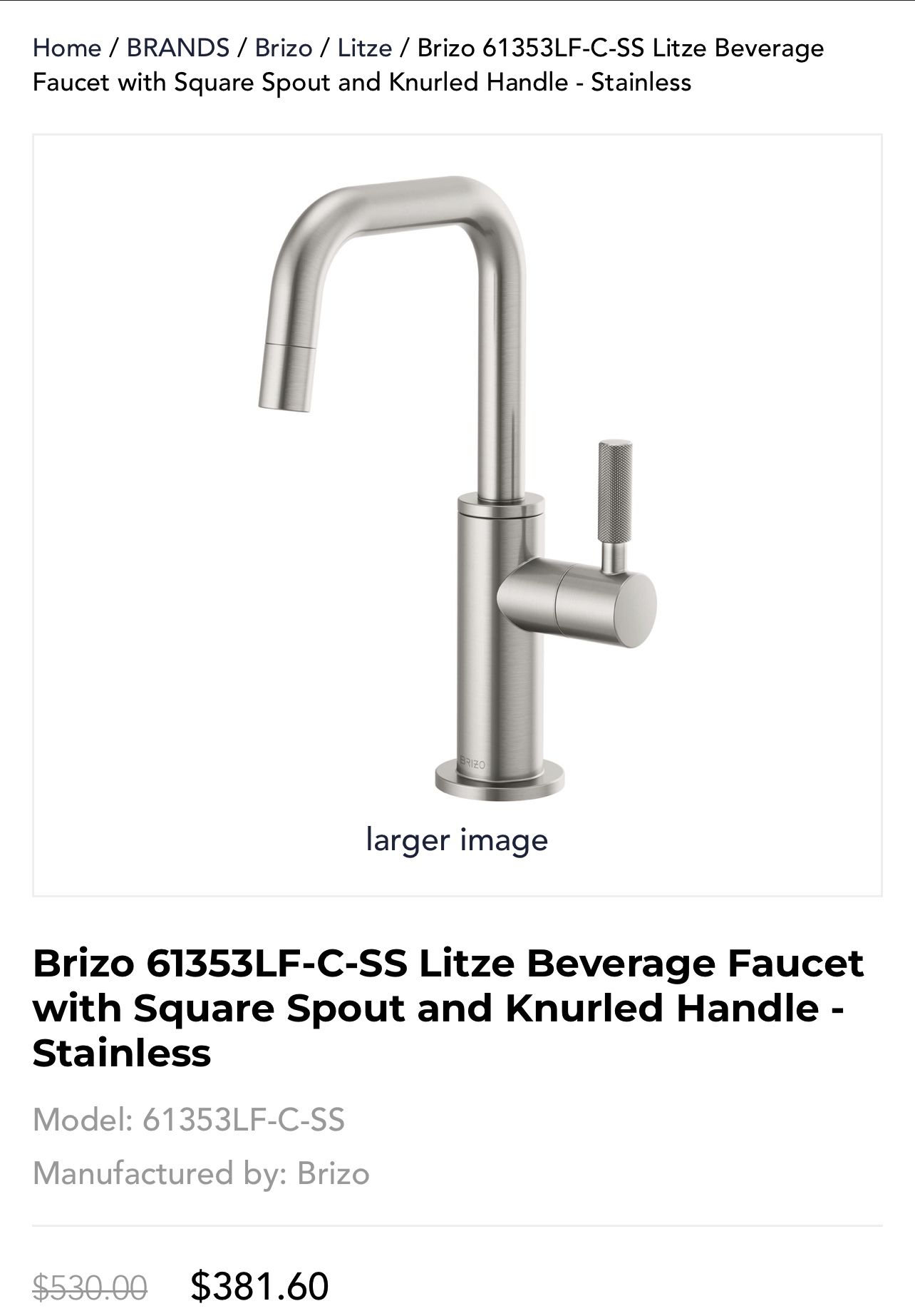 Brizo 61353LF-C-SS Litze Beverage Faucet with Square Spout and Knurled Handle - Stainless