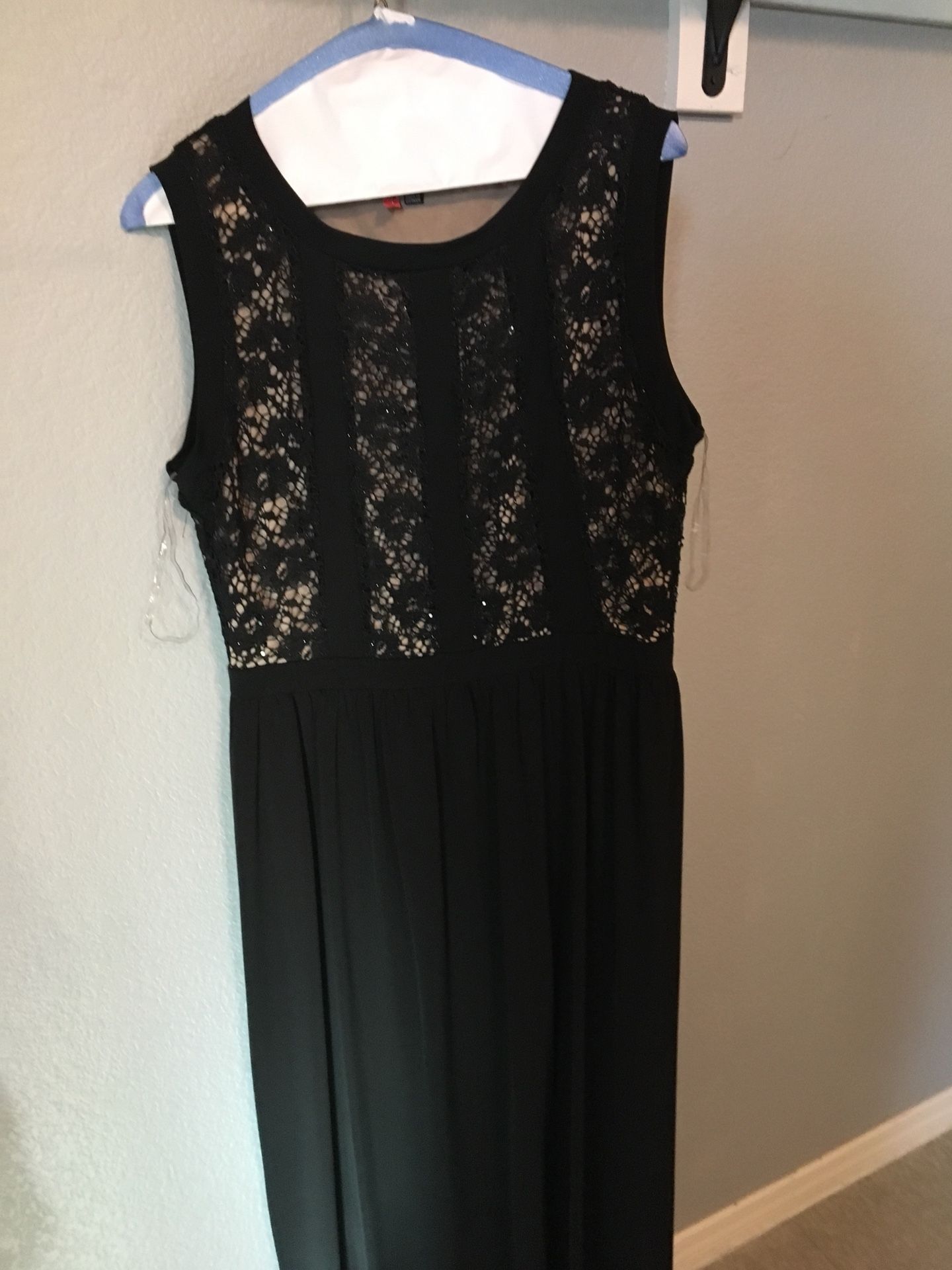 Large Black Dress with detailing on top.