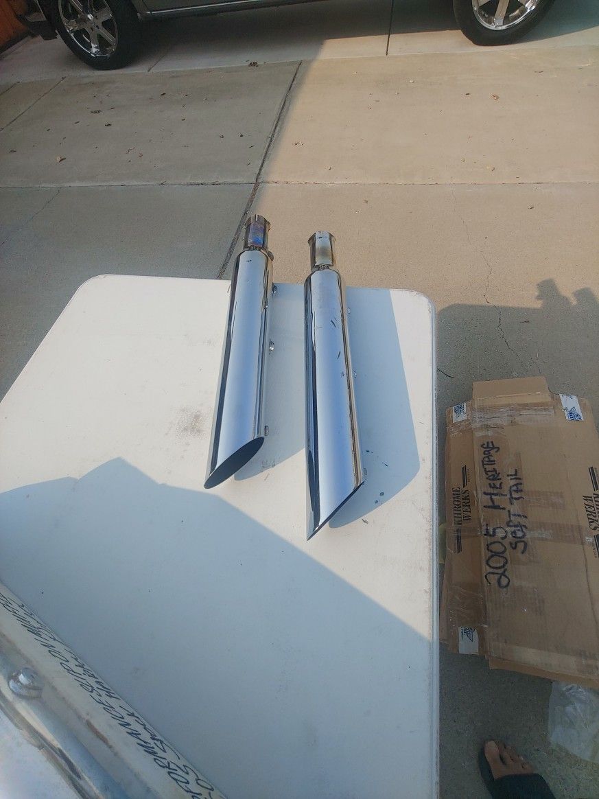 Chrome Harley-Davidson exhaust pipes