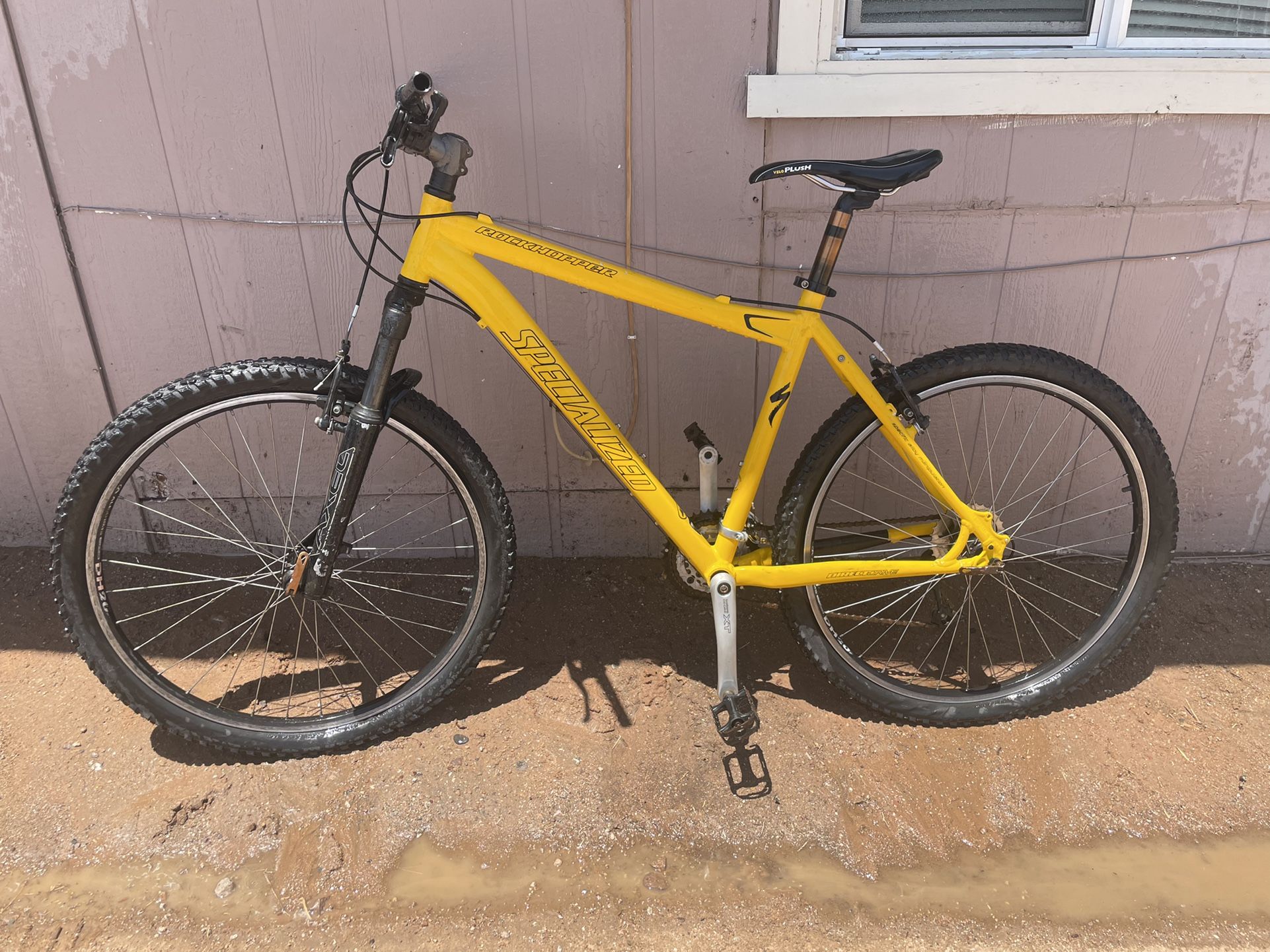 This is a 2009 Speciaized Rockhopper. Good condition for its age, has the normal wear of a 13yo mountain bike! Not perfect but still very solid bike. Needs new grips, the old ones were shot!! Its been sitting in storange for over a year so it could use some maintenance. It has adjustable front forks, alloy frame and very comfortable seat. Shoot me an offer!