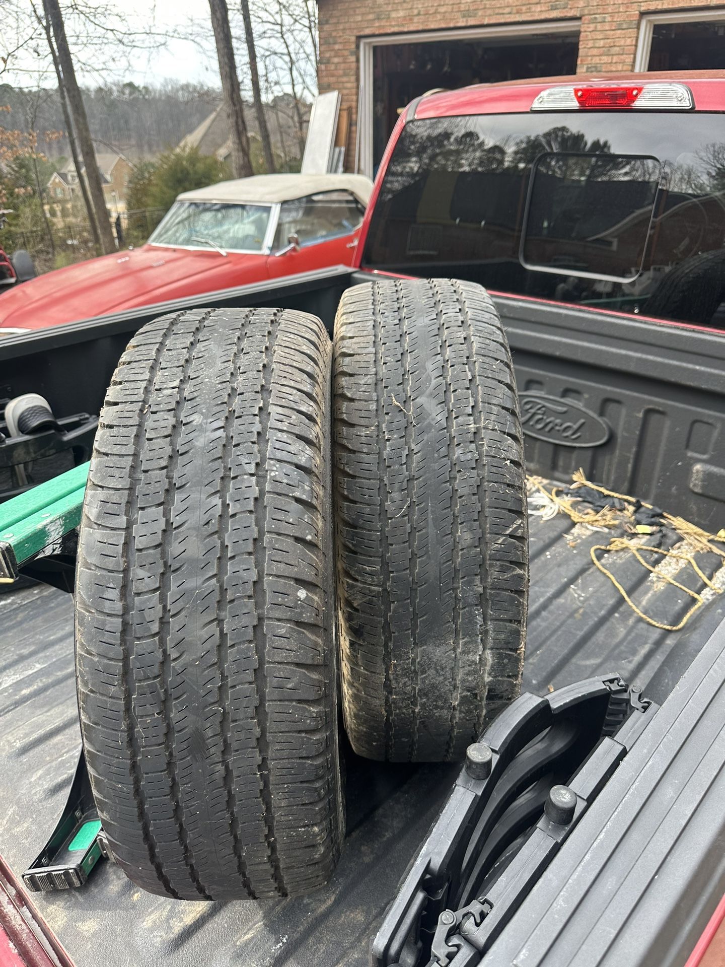 Instead of changing only 2 Tires, I changed all 4 these were put on my truck 8 months ago, Went with a different type of tire. These have a lot of tread remaining , $150