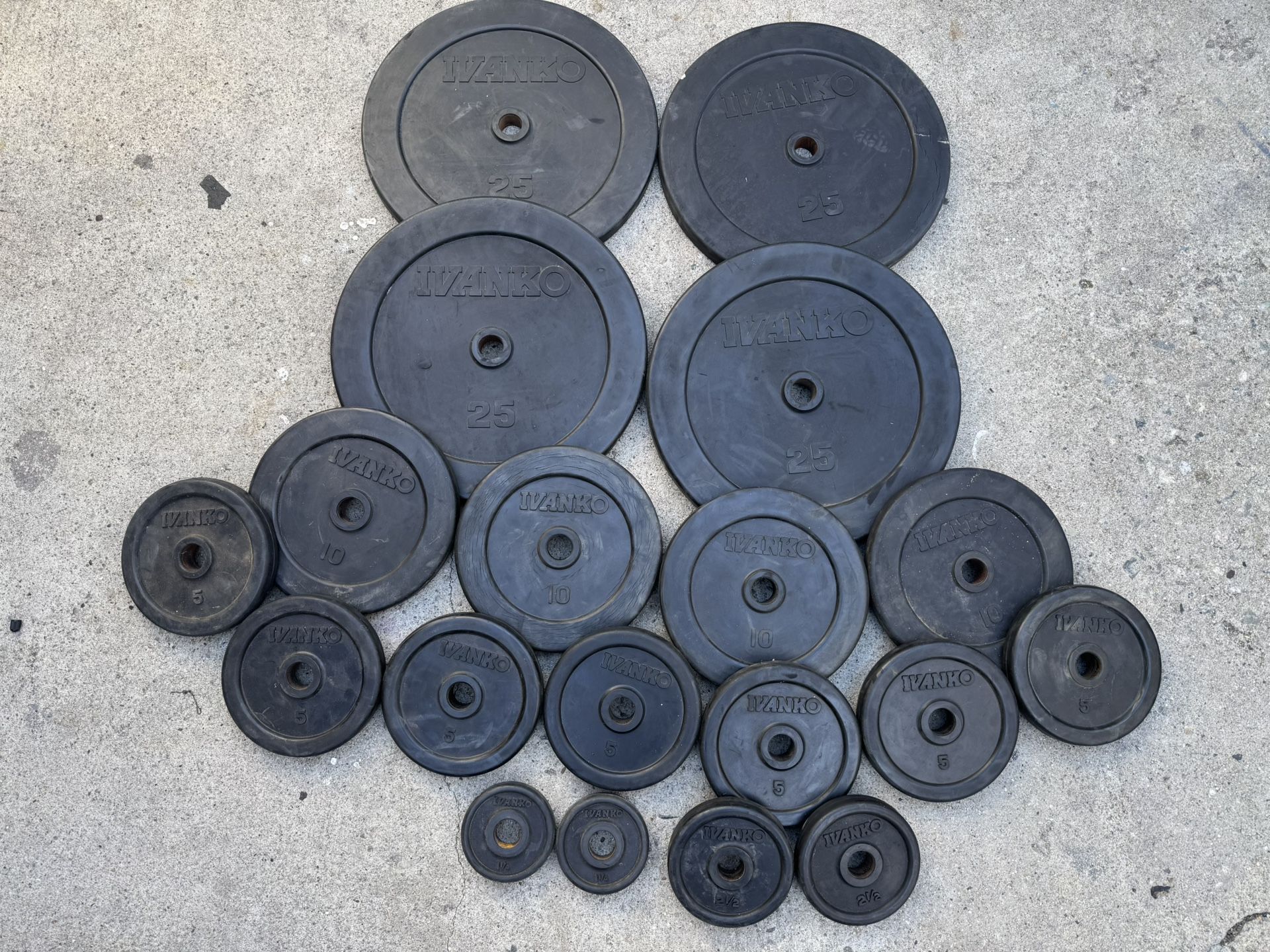 Ivanko Rubber Encased Steel Weights Good Solid Weight These Are Standard Size Plates . Normal wear and some have a bit of cracking but overall nice quality solid weights. $170 firm