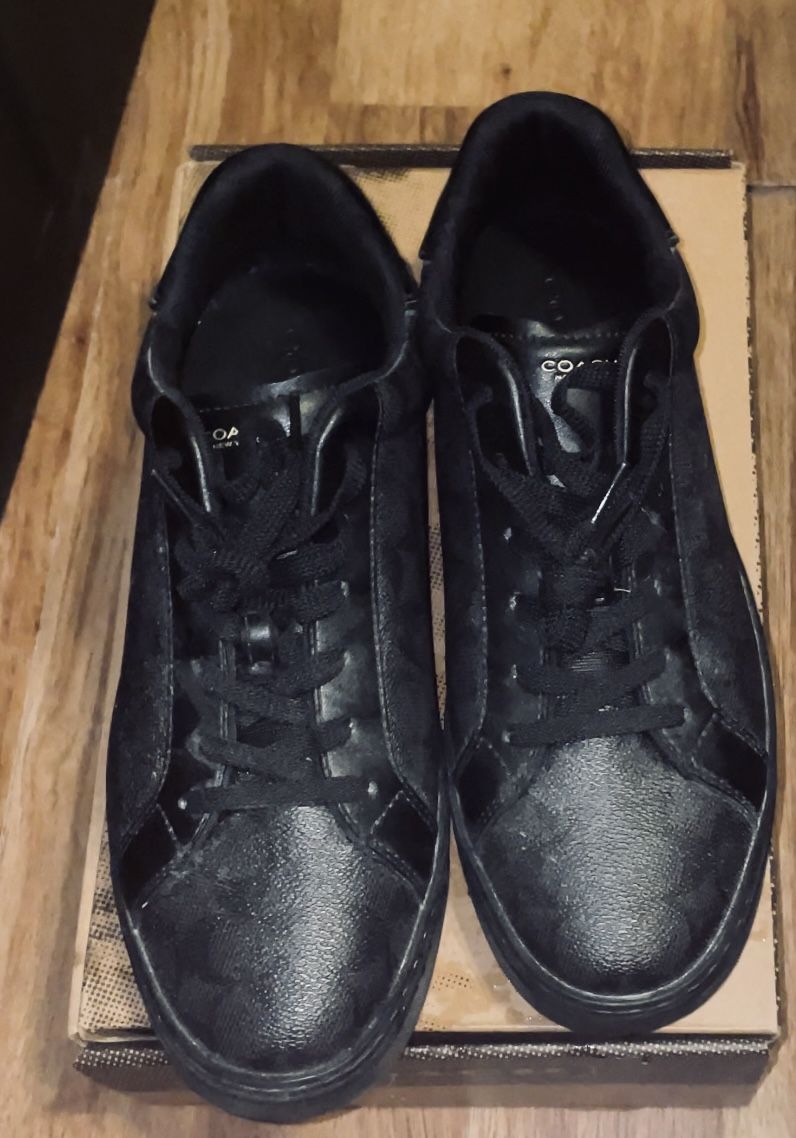 Men's High Line Signature Logo Coated Canvas Sneakers Trades/Sell Size 10.5 Good Condition box/wrapping/insole-board Good Quality No tears *wore one time* Receipts available Cash App/cash. Authentic shoes only.