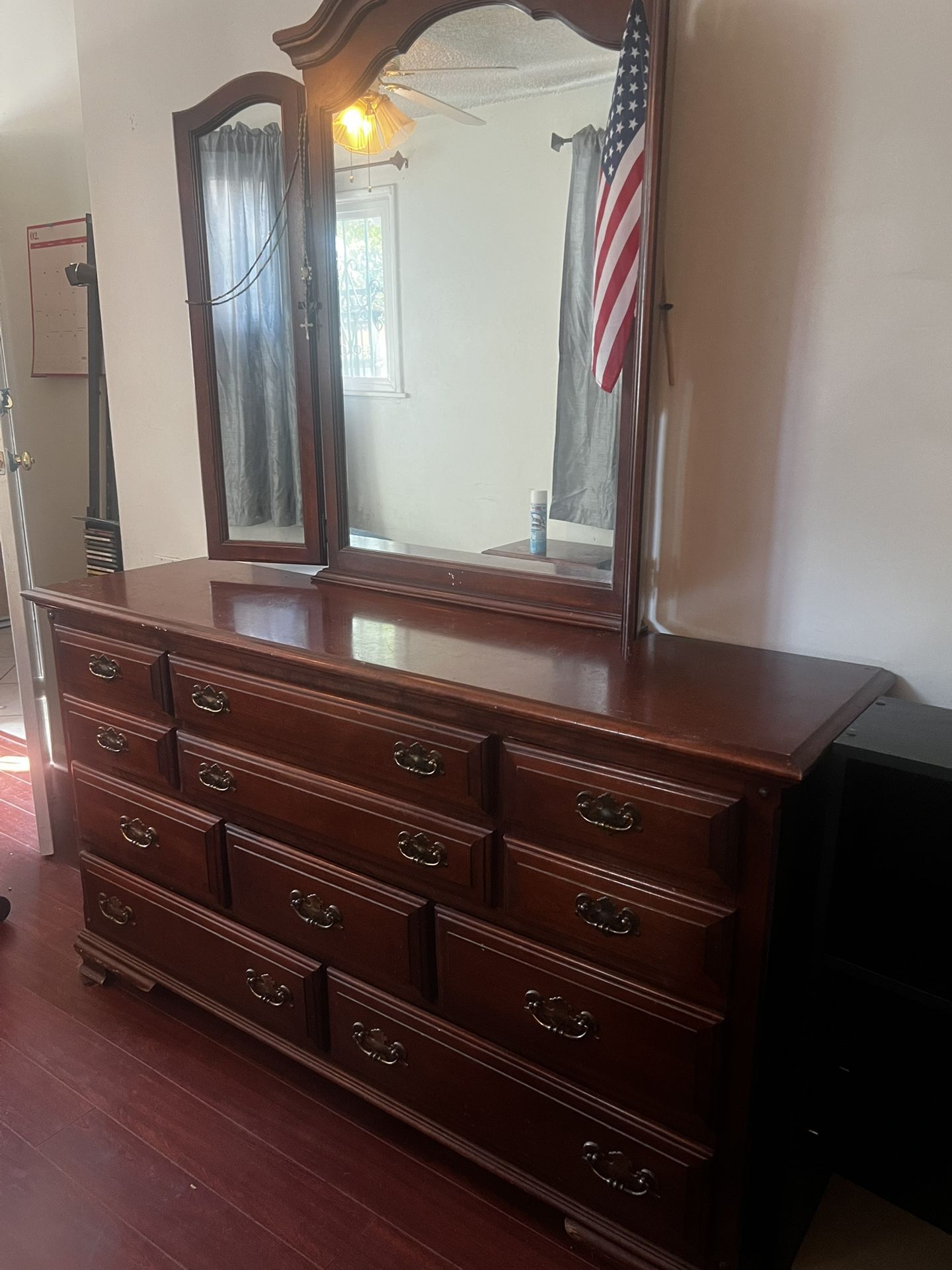 For Sale: Chest of Drawers – Sturdy, good condition, lots of storage space. Dresser/Drawer Unit – Spacious and functional. 2 Side End Tables – Matching set, perfect for living room or bedroom. $450 for everything . Make me offer