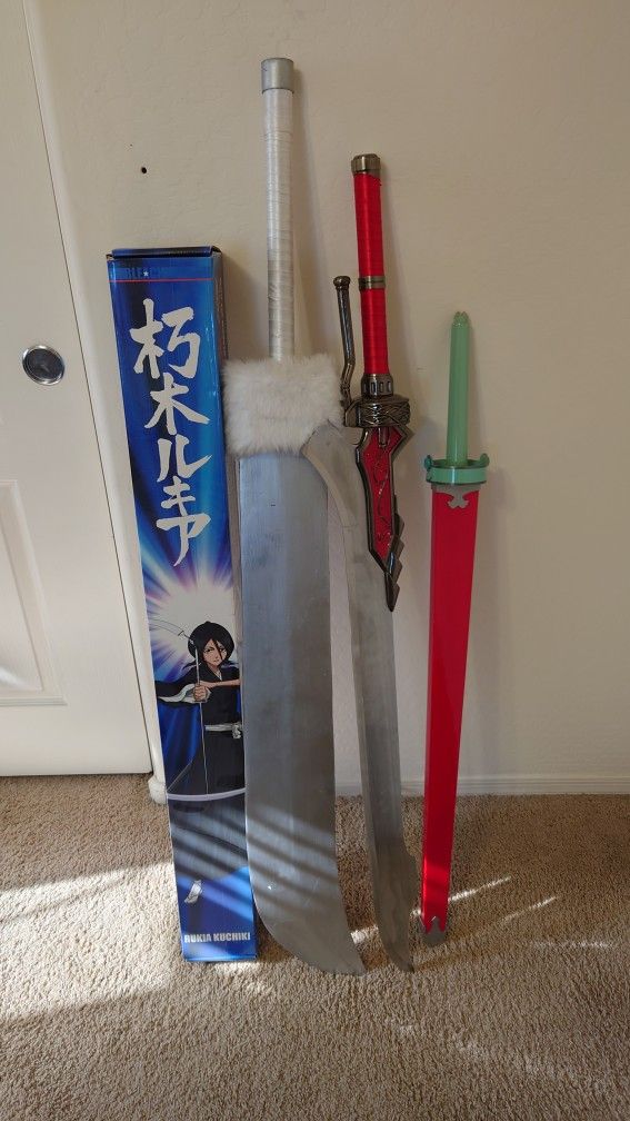 Bleach, Inuyasha, Sword Art Online, and Final Fantasy Gunblade all for sale. $30 each or $110 for all of them.