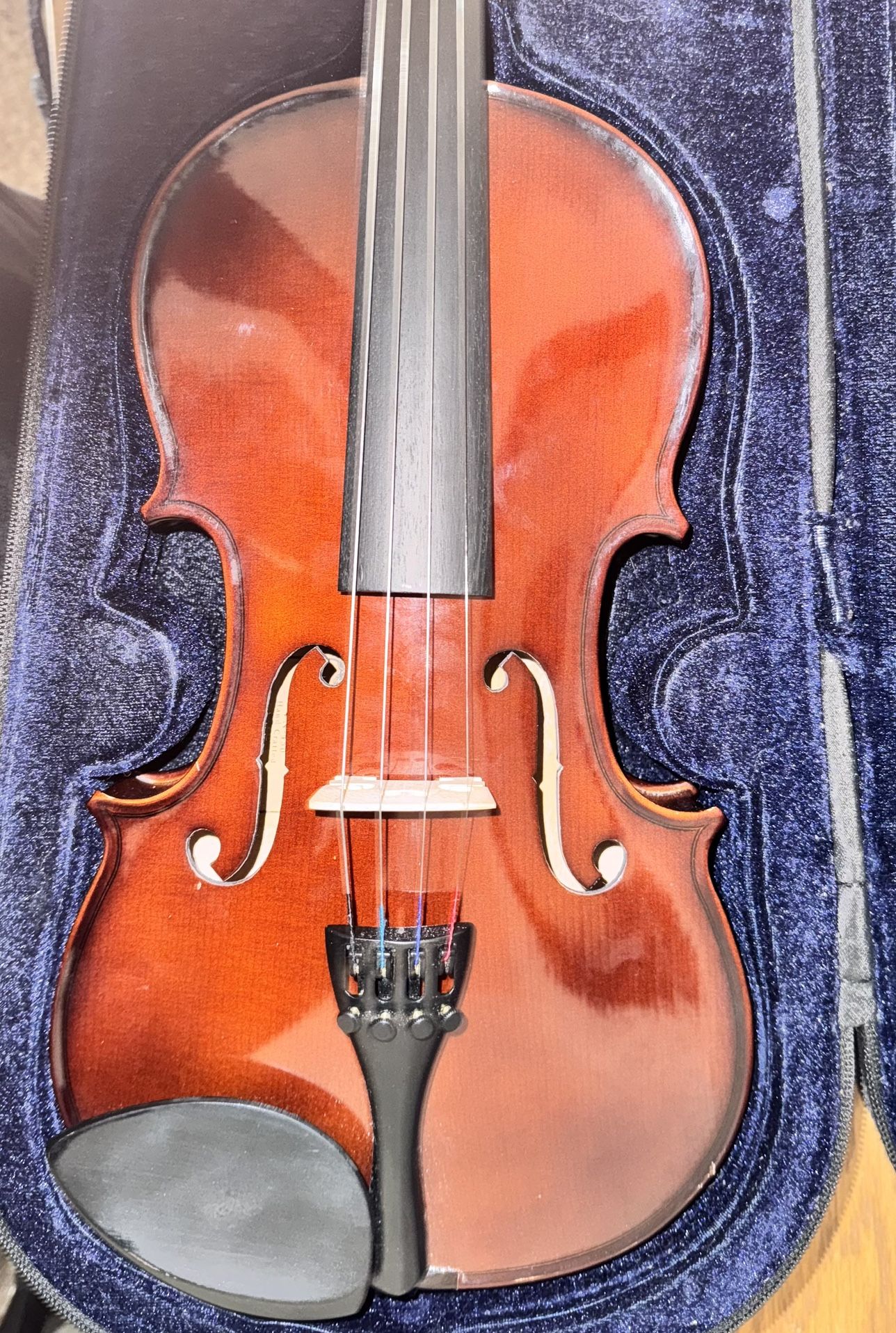 Comes with durable semi hard case with sheet music front pocket, and accessories pocket for rosin and/or tuner, a bow, and a chin rest, also comes pre finger taped.
