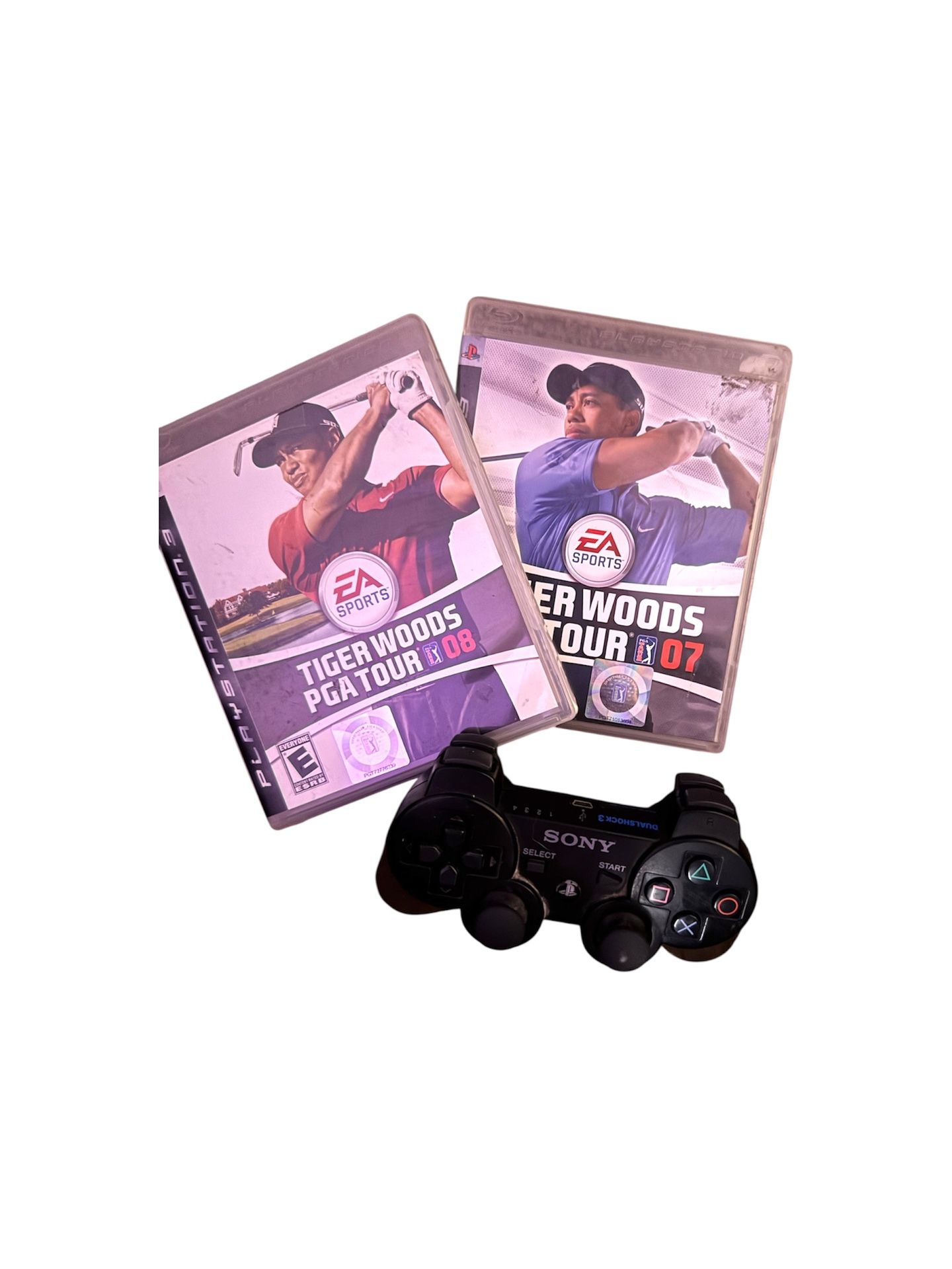Tiger Woods, PGA Tour, 07 and 08 games with dual shock wireless black controller for PS3