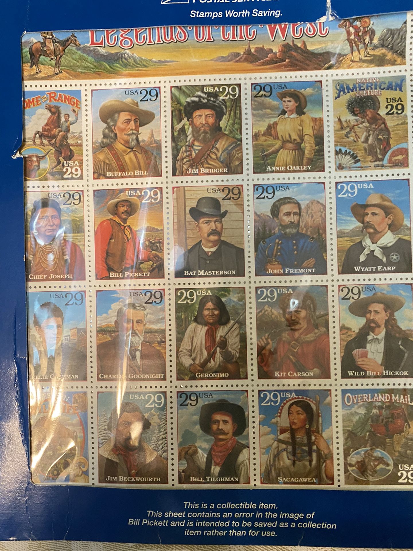 Legends of the west series with error stamp. 150,000 in circulation. Obtained through a lottery . Bill Prickett incorrect.