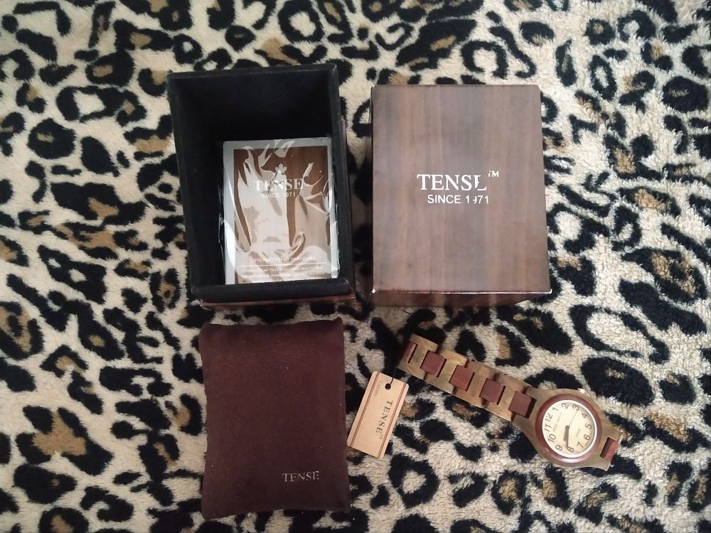 Brand new unisex wooden watch with case. Still has tags attached.