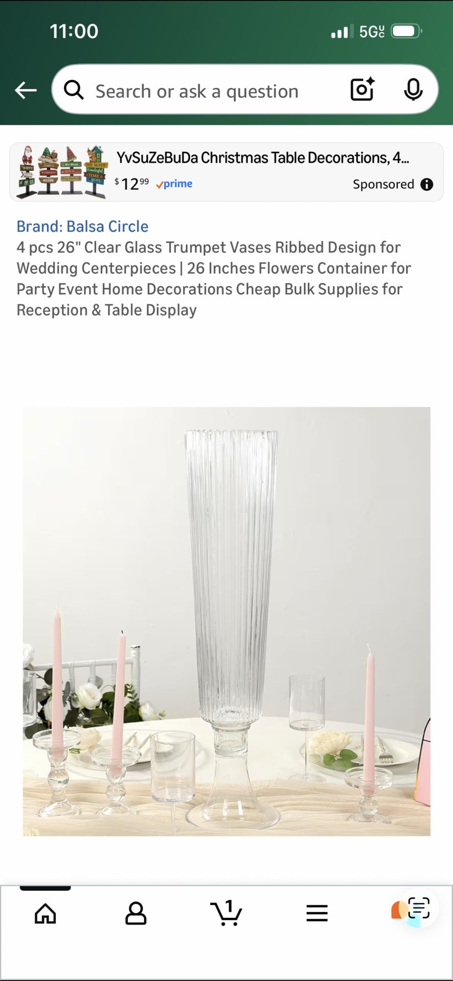 4 pcs 26" Clear Glass Trumpet Vases. It’s 4 of them and they are 26 inches tall!