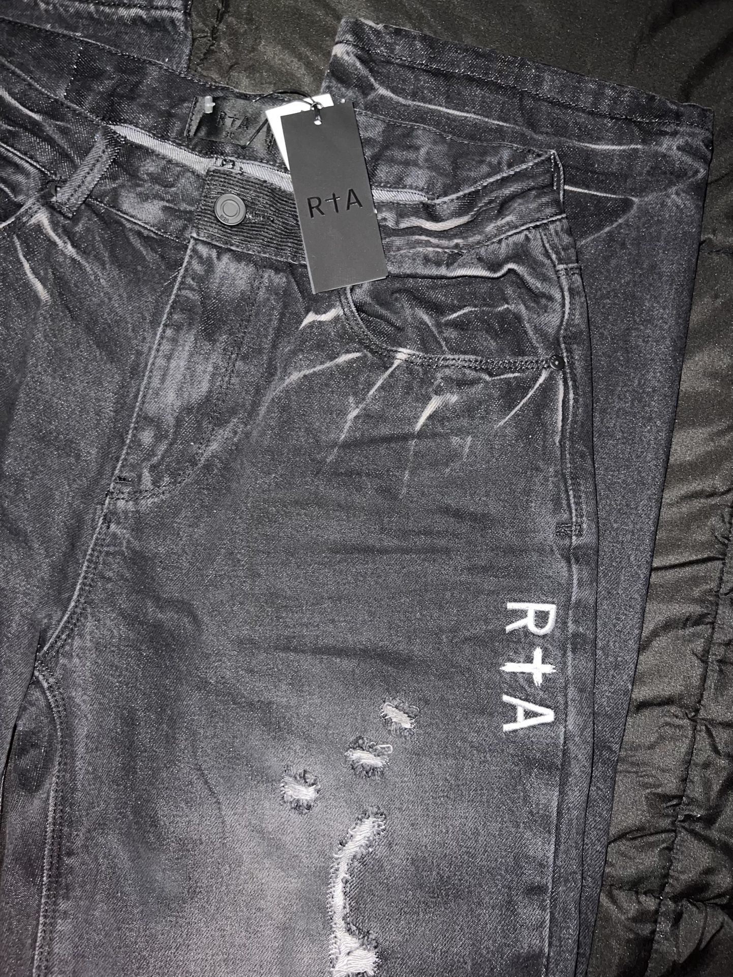 Jeans π Brand: RTA Color: Black π€ Size: 30 Style: Bootcut (Wide Leg) Material: Cotton Distressed Brand New π Cash is preferred π΅ Will accept Venmo π² Please bring EXACT amount no change Pickup Only π»