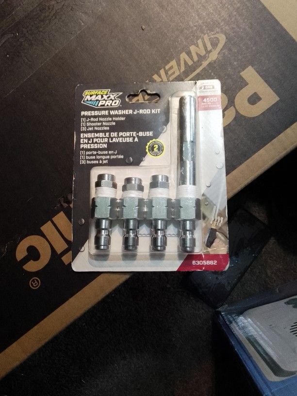 Maxx Pro Pressure Washer J-rod Kit. Brand New still in the package. Includes j-rod 4-way nozzle holder, shooter 4.0 nozzle, 0010 nozzle for high rinse, 2540 nozzle for low soap, 2510 nozzle for low rinse. suited for 3.5 to 4.0 GPM pressure washers, standard 1/4 inch quick connect socket, stainless steel construction for increased durability. Selling for $85 in stores I'm only asking $50 OBO.
