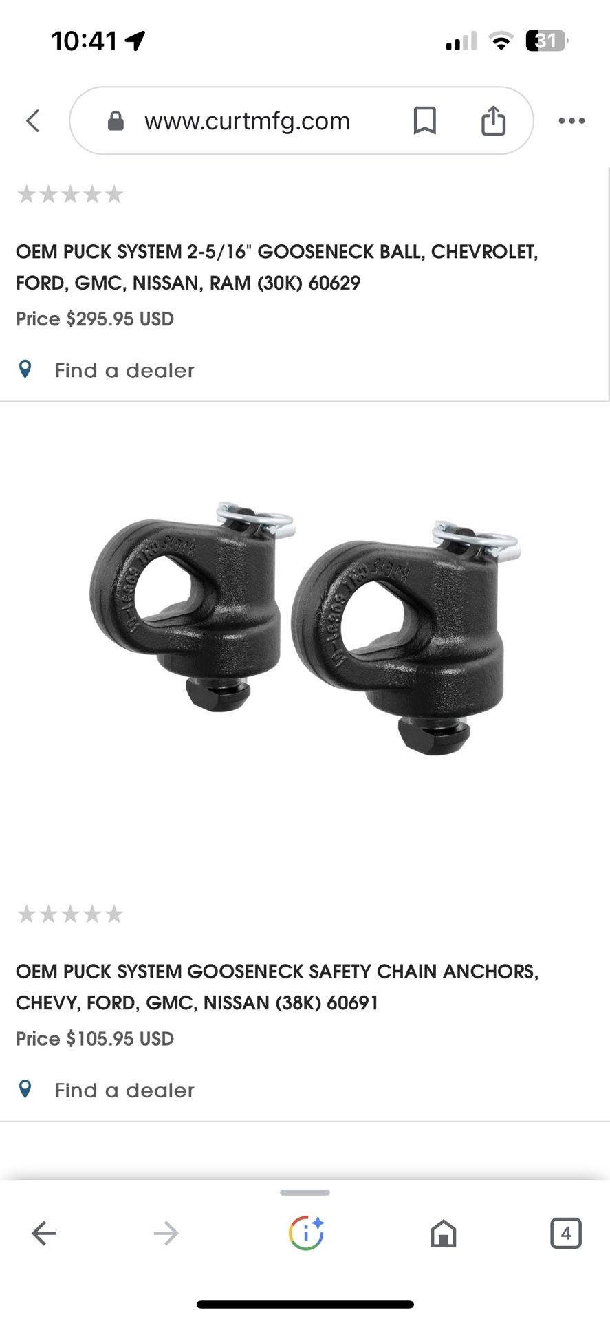 Curt Puck 5th Wheel Safety Chain Anchors